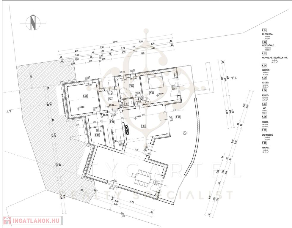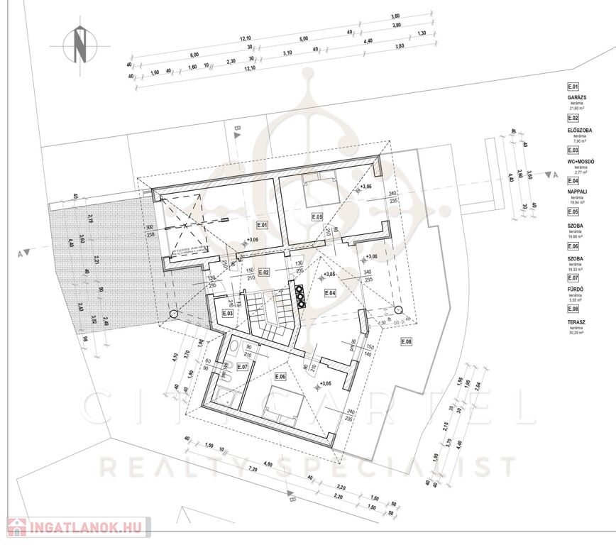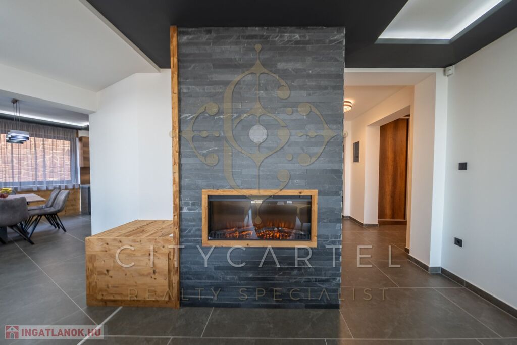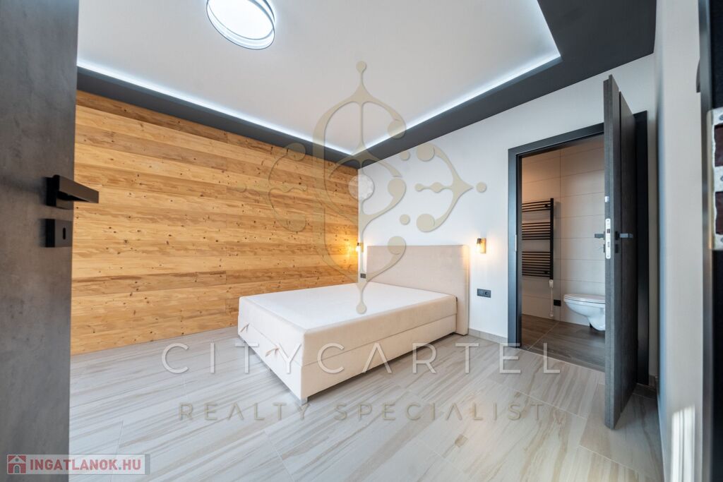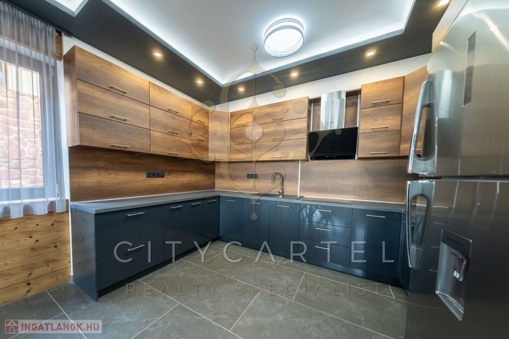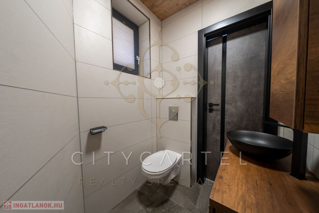Felső szint: amerikai konyhás nappali, hálószoba, fürdőszoba, vendégmosdó, 50 nm-es terasz, 1 garázs