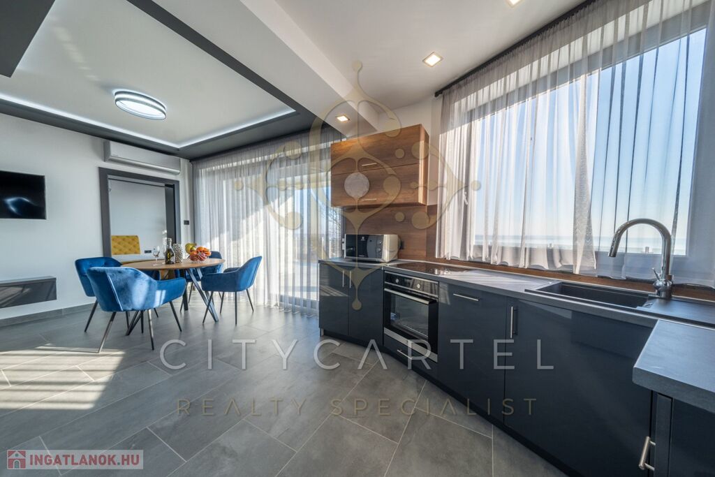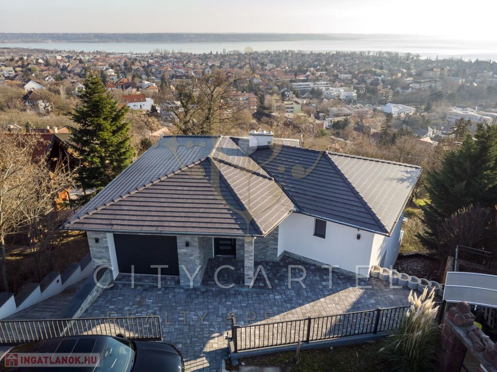 A ház három szintes, dombra épült, letisztult, elegáns, kihasználva a telek kiváló adottságait. A hatalmas teraszokról gyönyörű kilátás nyílik a Balatonra! A tulajdonos nagy figyelmet fordított a minőségi anyagok használatára, mind a külső, mint a belső terek kialakításánál. Magas műszaki tartalom, a legmodernebb technikai megoldások jellemzik! Minden luxus igényt kielégít!