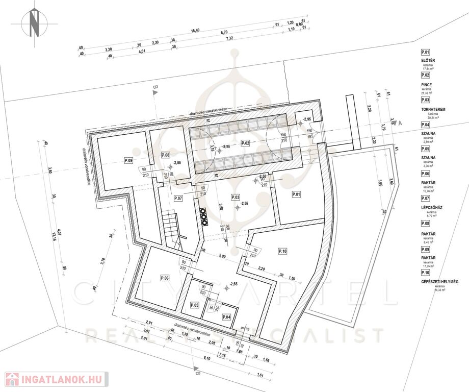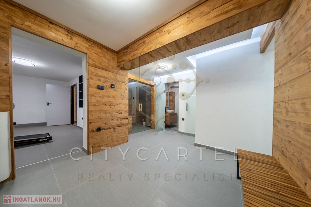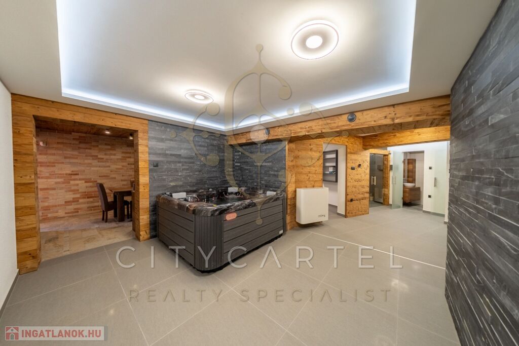Alsó szint: wellness rész: 10 fős szauna, jacuzzi, edzőterem, pihenőszoba, fürdő, külön wc, konyha, borospince,