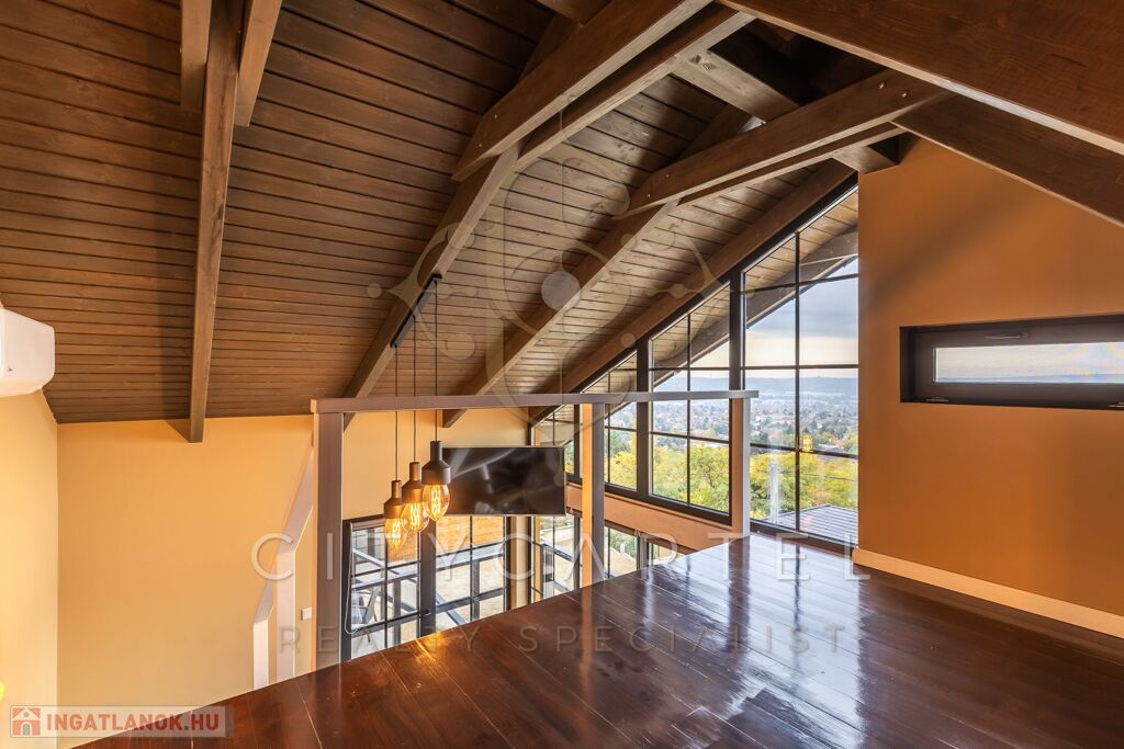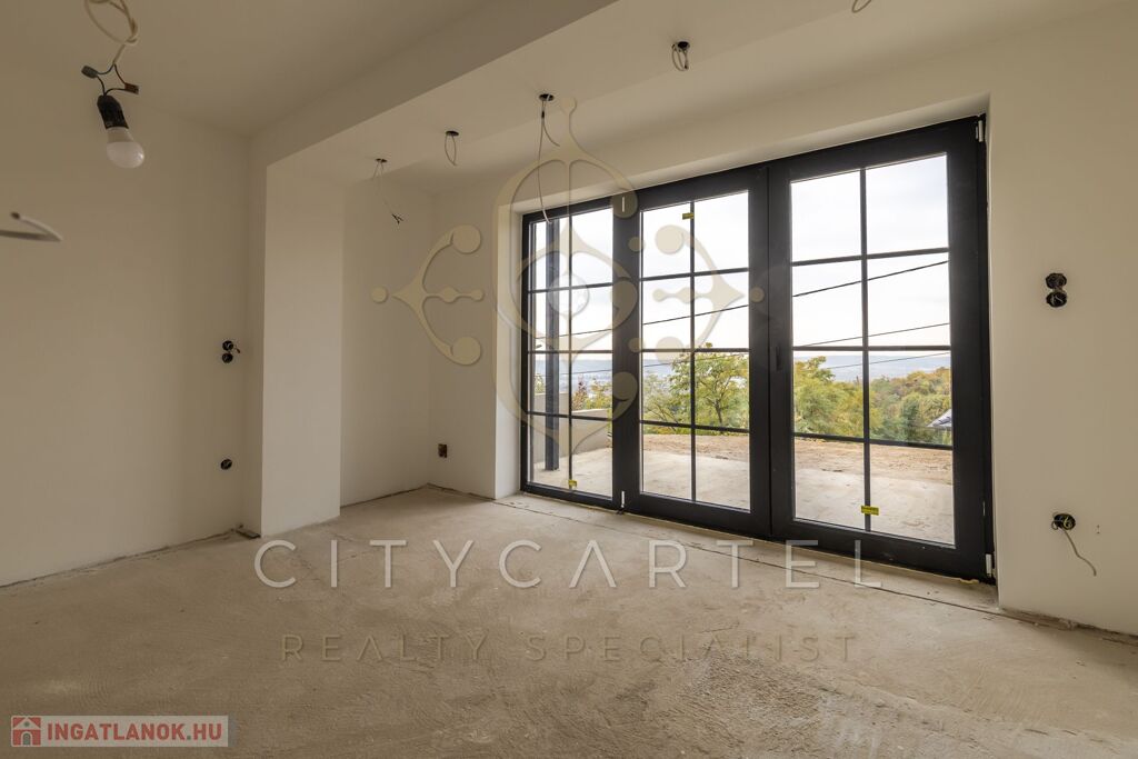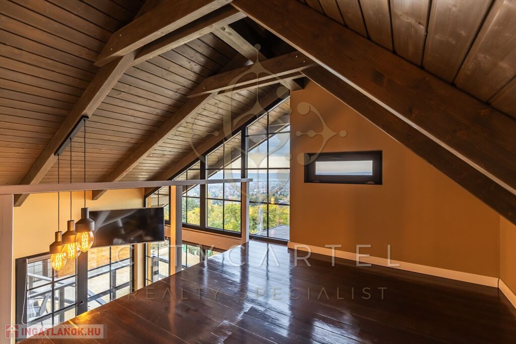 - A kertszinten két szoba és egy zuhanyzós fürdőszoba került kialakításra, közvetlen kertkapcsolattal és egy 20 nm-es terasszal. Erről a szintről is csodás kilátás nyílik, ami különlegessé teszi az ingatlant – hiszen még a kertből is panoráma tárul elénk. Ezen a kertrészen akár egy kisebb medence is kialakítható, tovább fokozva a megélhető nyugalmat és luxust.