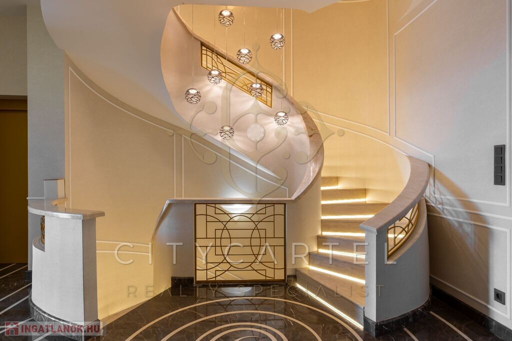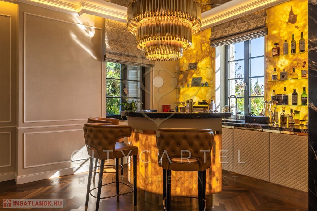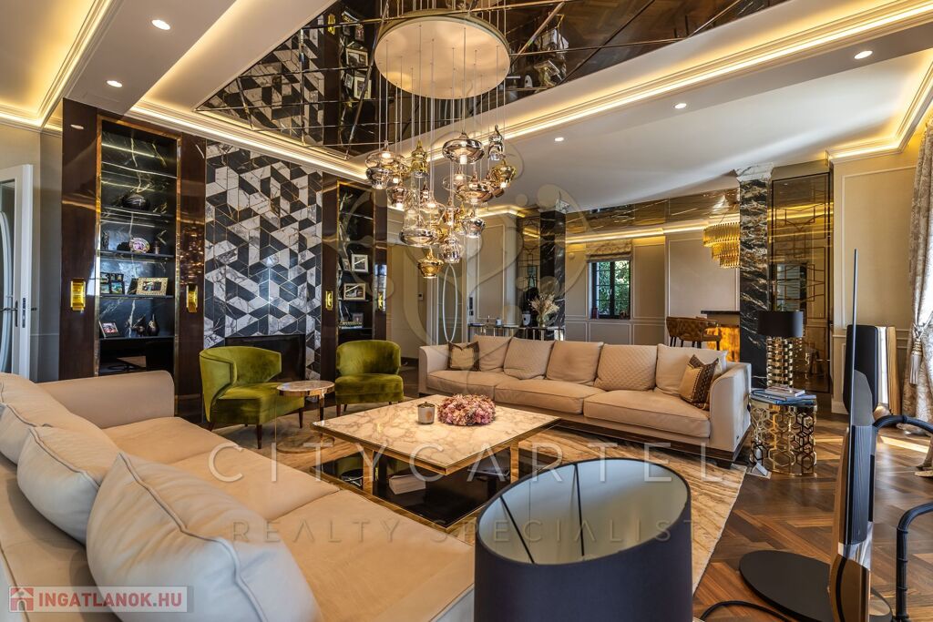 A budai dombok között, a XII. kerület egyik legelőkelőbb részén, a Széchenyi-hegy déli lejtőjén található ez a páratlan, négy szintes, közel 1400 nm-es luxusvilla, amely a klasszikus paloták méltóságát ötvözi a modern technológia kényelmével.
