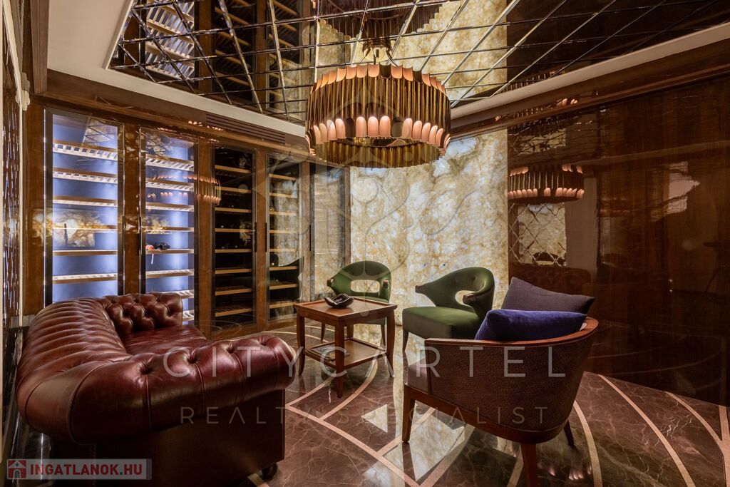 A ház belső tereiben minden anyag, minden vonal és fényforrás gondosan megkomponált. A tágas nappali, a kristálycsillárokkal díszített étkező, a letisztult, zárt konyha, a stílusos borozó és lounge mind egy életérzést közvetítenek: a nyugalom, a siker és a kifinomultság világát.