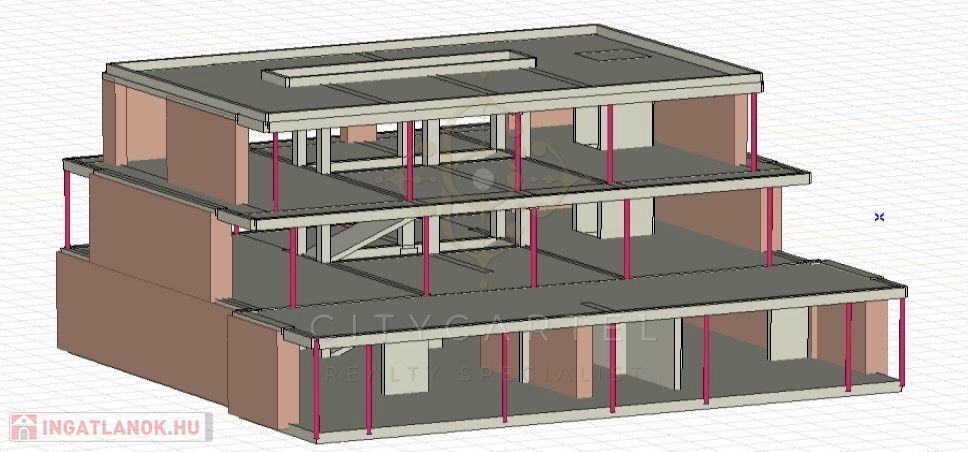 Most zajlik a középső szint még hiányzó pilléreinek betonozása és a tetőszint gerendáinak kiépítése, ezután folytatják a tetőszigetelést és a homlokzatok előkészítését. Nyílászárók nincsenek. A garázs és a föld alatti alagút szigetelése már megtörtént.
