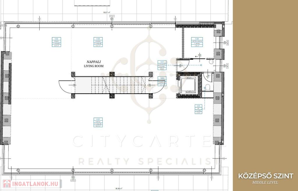 Főépület középső szint nettó: 182 nm + 242 nm terasz
