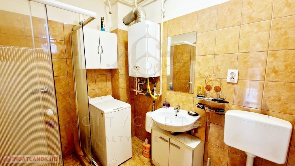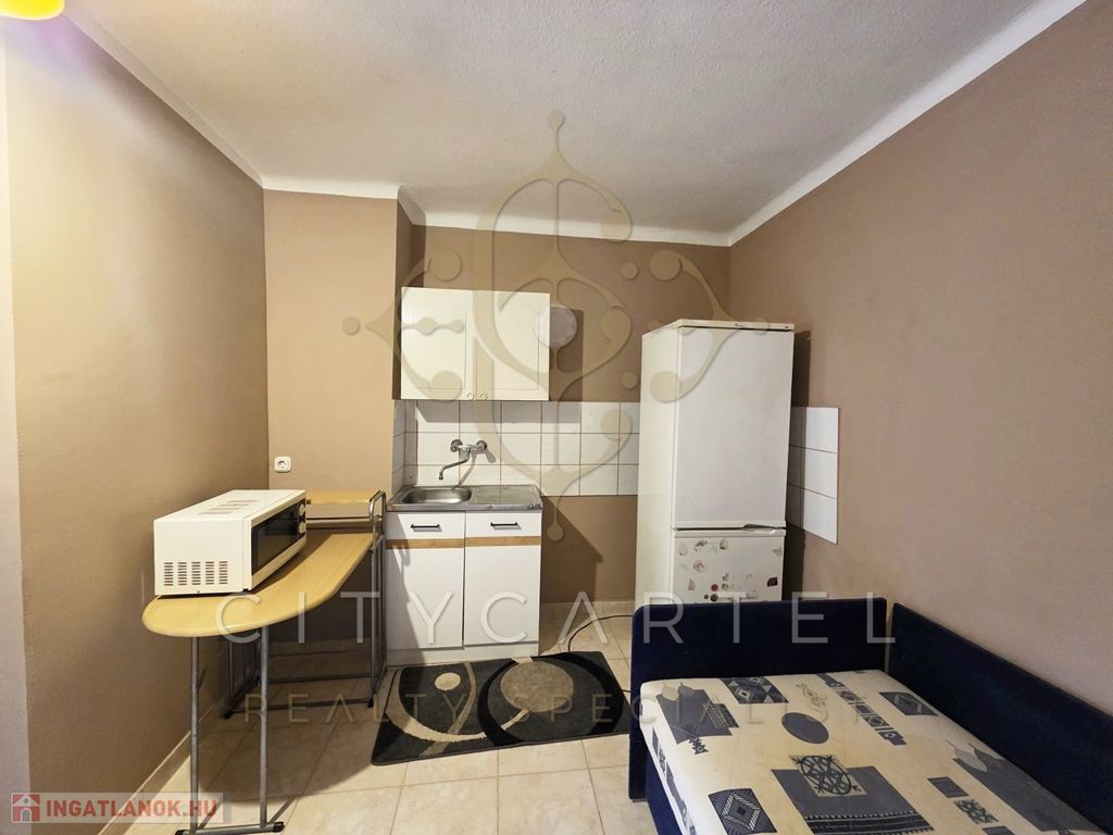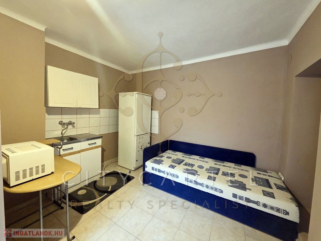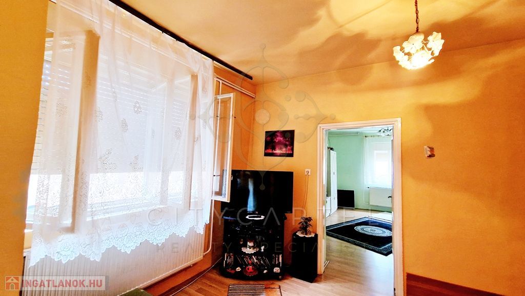 A hátsó lakrész kisebb, 16 nm-es, egy személy részére megfelelő. Előszoba, zuhanyzó és wc, és egy egyben található konyha és háló rész. A bejárati ajtók műanyagok, a ház többi részén még minden nyílászáró fa. A telekrész legvégében egy 10 nm-es tároló, ami jól kihasználható.