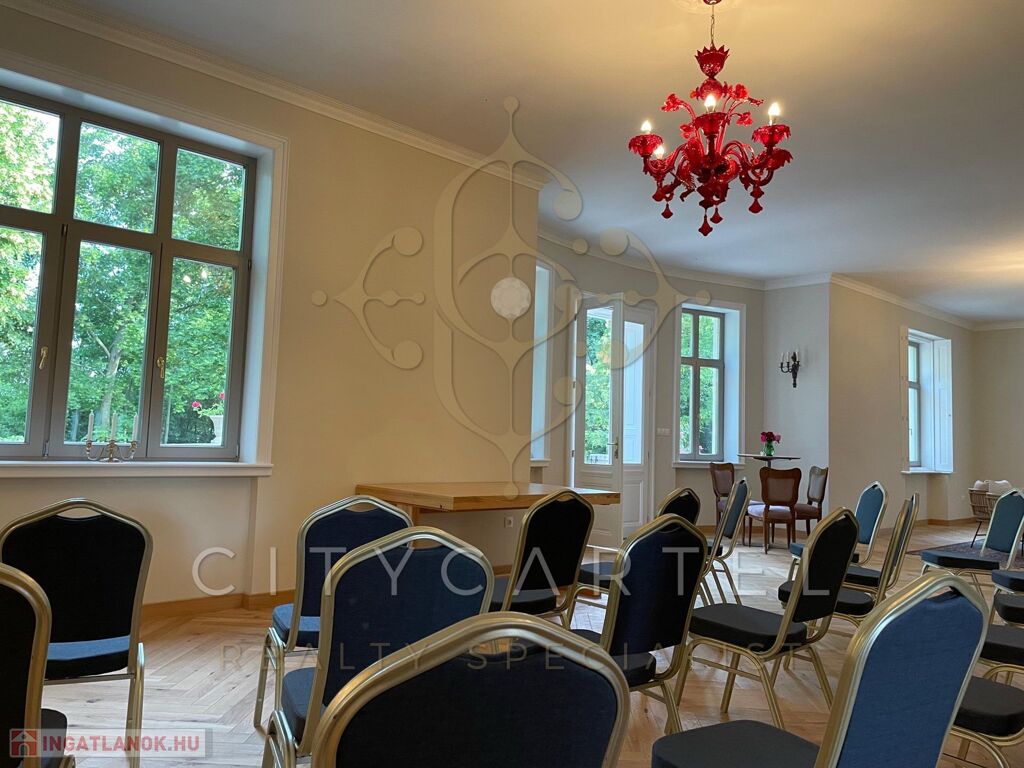 - Földszint: elegáns előtér és hall, 120 nm-es bálterem (amely alkalmas céges rendezvények, kisebb konferenciák, családi események és esküvői vacsorák megtartására 40-50 főig), egy hálószoba káddal, két fürdőszoba, konyha, kiszolgáló területek