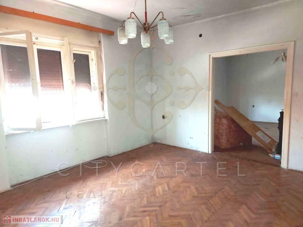A csendes alföldi kisváros centrumától néhány percnyire, családias hangulatú utcában, felújításra szoruló, kétszintes családi házat kínálunk eladásra. Az 1970-es években épült, kiváló statikai állapotú épület masszív, csúsztatott zsalus technológiával készült falai 150 nm-es hasznos alapterületű lakóteret zárnak közre. A ház fölszintjén található, két autó számára is alkalmas garázsból egy 50 nm-es, 1+1 szobás, összkomfortos lakás nyílik. Az emeleten elhelyezkedő 3 tágas, napfényes szobához konyha, kamra, előszoba, fürdőszoba és WC kapcsolódik. Az ingatlan fűtéséről hagyományos cserépkályhák gondoskodnak. A családi ház a szigetelést, elektromos- és vízvezetékek felújítását, nyílászárók és burkolatok cseréjét követően kényelmes, meleg otthont biztosíthat nagyobb családok, vagy akár két generáció számára is. A tekintélyes méretű, 2.317 nm-es telek gazdálkodásra is kiváló lehetőséget kínál, de parkosított udvar és kert kialakítására is alkalmas lehet.