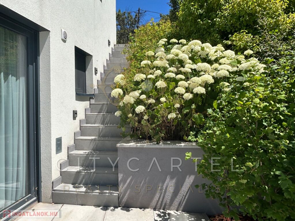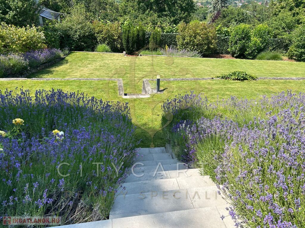 Gyönyörűen parkosított kert – teraszos kialakítással, automata öntözőrendszerrel