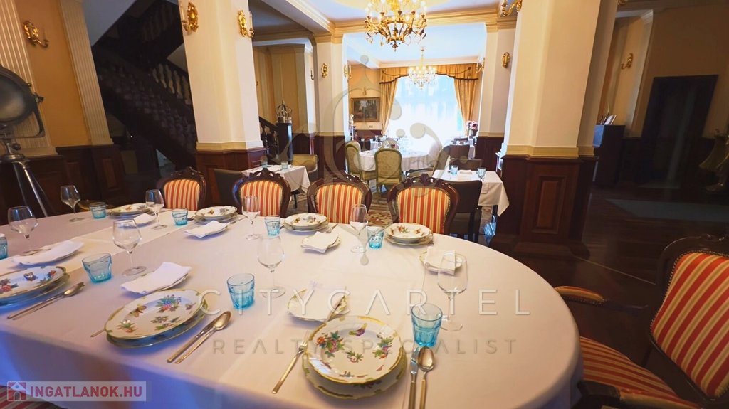 A néhány lépcsőn megközelíthető, impozáns előteraszról nyíló főbejáraton belépve tágas, 122 nm-es nappali fogadja az érkezőket, amely tökéletes választás lehet nagyobb fogadások és rendezvények elegáns helyszínének.