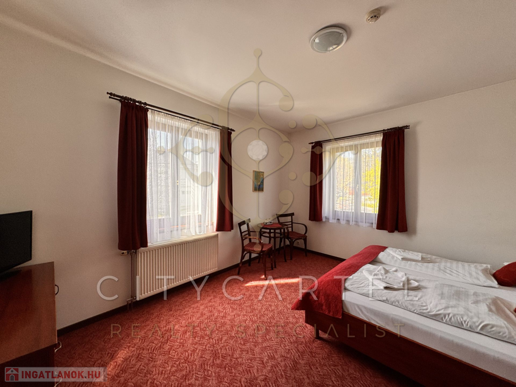 Budaörs közkedvelt, központi, jól megközelíthető részén kínálunk eladásra egy rendkívül barátságos, kellemes, jó állapotú, részben bútorozott, nagy teraszos, kertes, 14 kétágyas, légkondicionált, zuhanyzós-fűrdőszobás szobával rendelkező hotelt. A szobákban TV, telefon és minibár is biztosítja a vendégek maximális kényelmét.