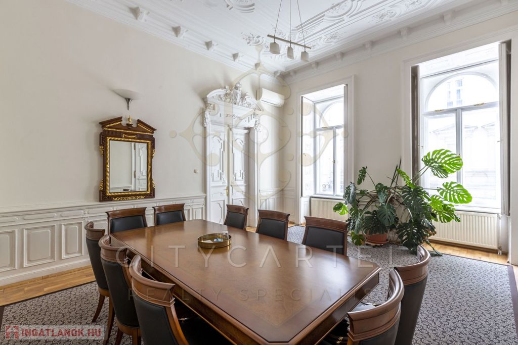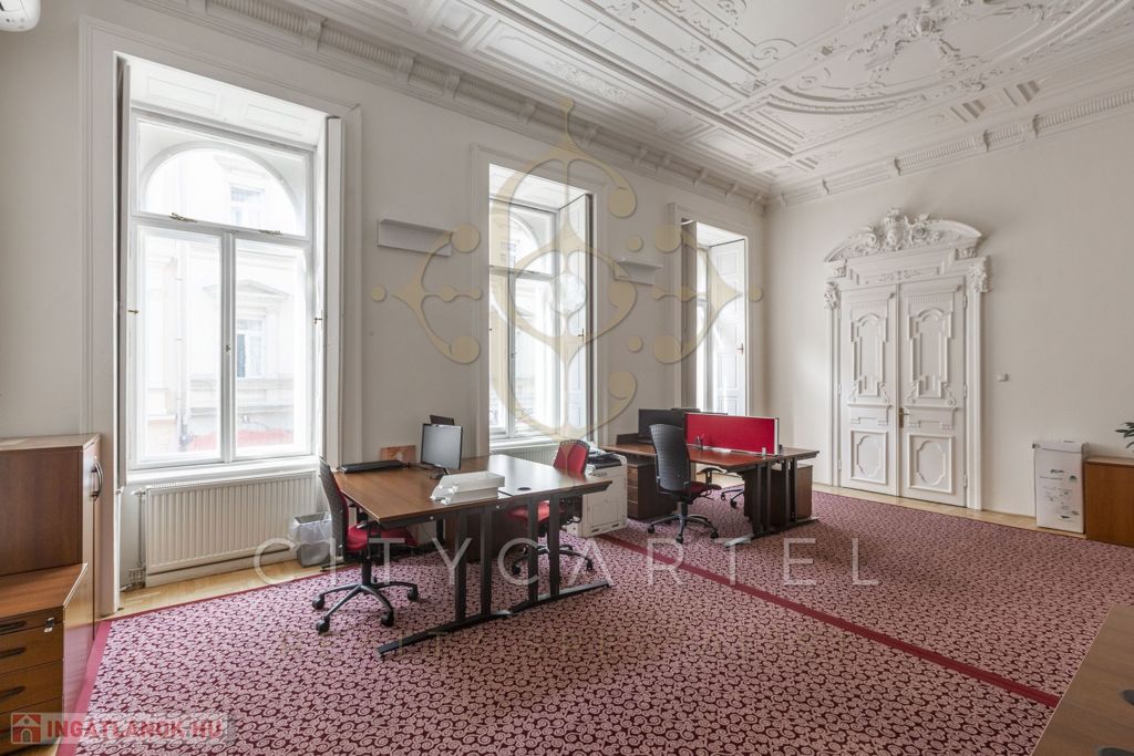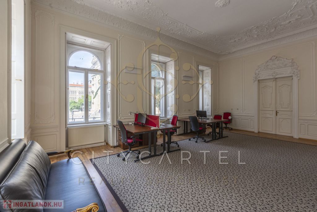Az első emeleti, impozáns ingatlan rendkívül világos és tágas, kifinomult részletekkel díszített belső terekkel rendelkezik. Körbejárhatósága és két külön bejárata lehetőséget biztosít akár két szeparált iroda kialakítására is.