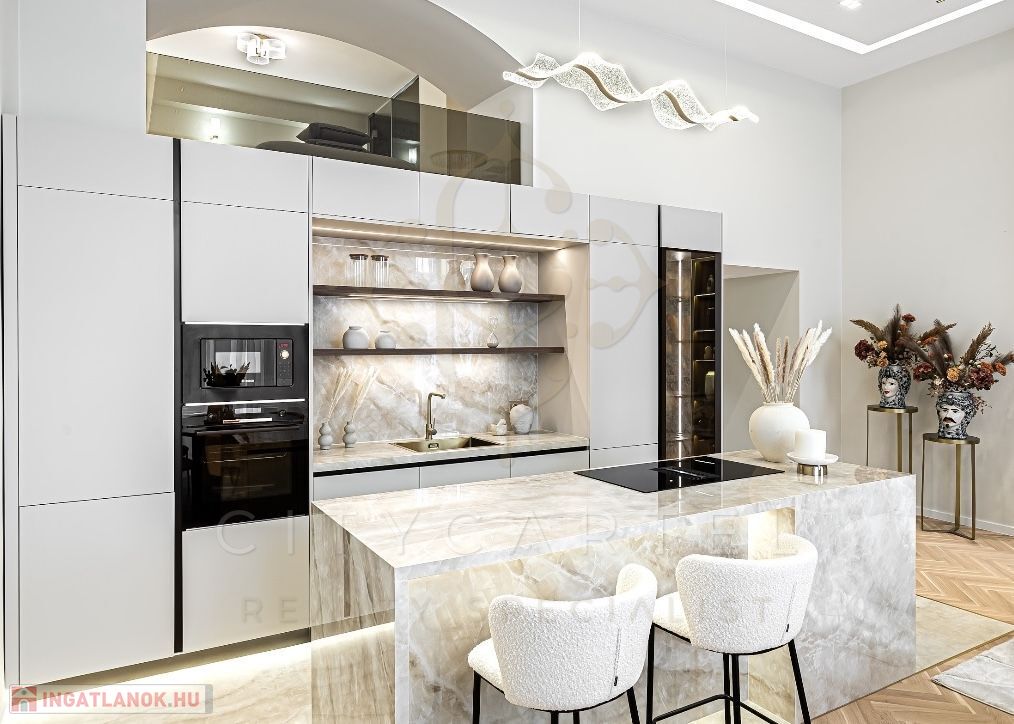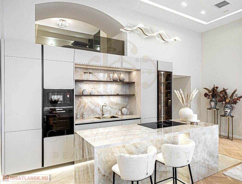 Az V. kerület szívében, presztízsértékű utcában, 96 nm-es, kétszintes, nappali + 2 hálószobás + 2 fürdőszobás luxuslakás, amely minden részletében a minőséget, az eleganciát és a modern otthonérzetet képviseli.
