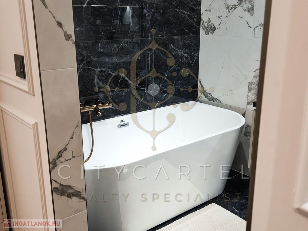 A fő hálószoba saját, kádas fürdőszobával és WC-vel rendelkezik, ezen felül pedig egy második, zuhanyzós fürdőszoba is a lakás része, szintén WC-vel.