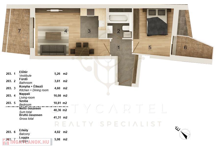 A liftes társasház 2. emeletén található, 45,36 nm-es, (40,36 nm lakás 10 nm terasszal) 2 szobás lakás korszerű hőszivattyús fűtés–hűtéssel és teljes körű okosotthon-rendszerrel felszerelve várja új tulajdonosát. A burkolatok még választhatók, így a leendő tulajdonos saját ízlésére szabhatja az ingatlant.