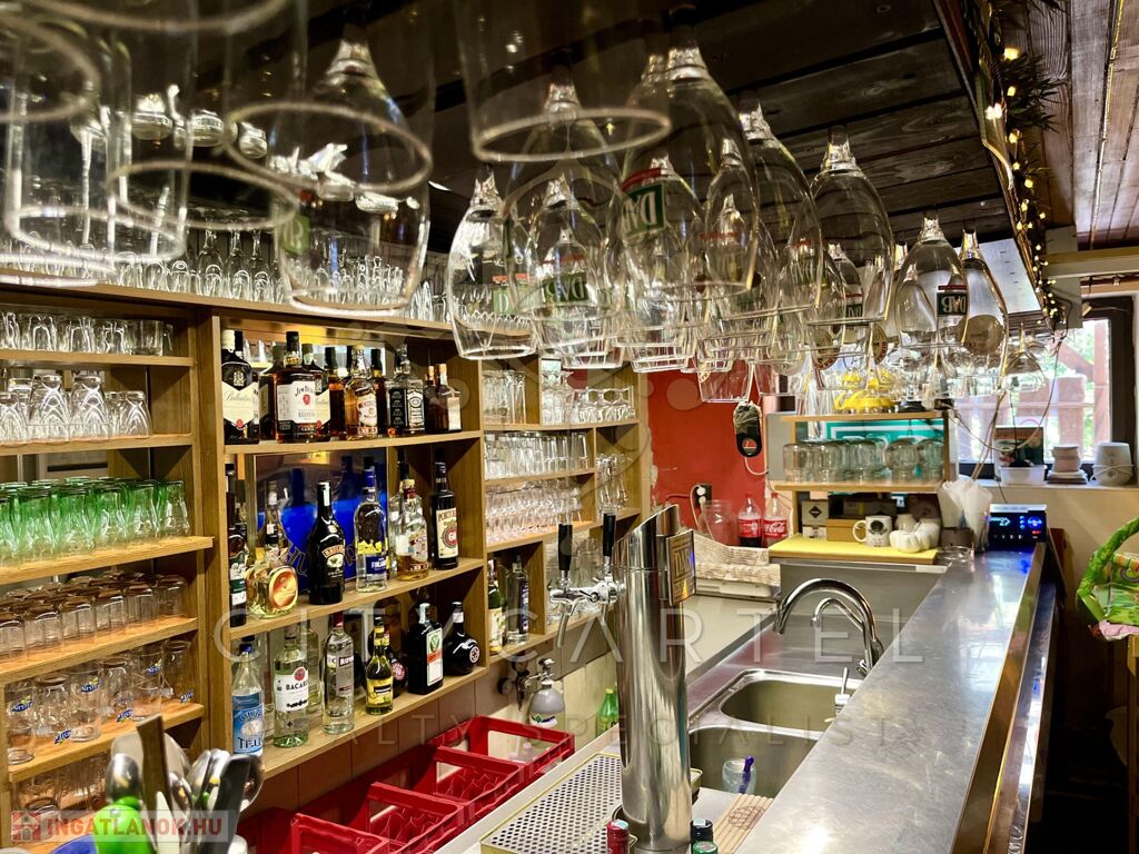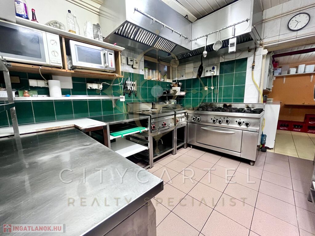 A vendéglő fogadó tere 110 nm, a konyha 20 nm, az előkészítő 6 nm, a mosogató 10 nm, a mosdók 2-2 nm-esek.