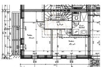 A felső szinten 2 db egyenként 13 nm-es világos szoba és egy zuhanyzós, mosdós fürdőszoba található.